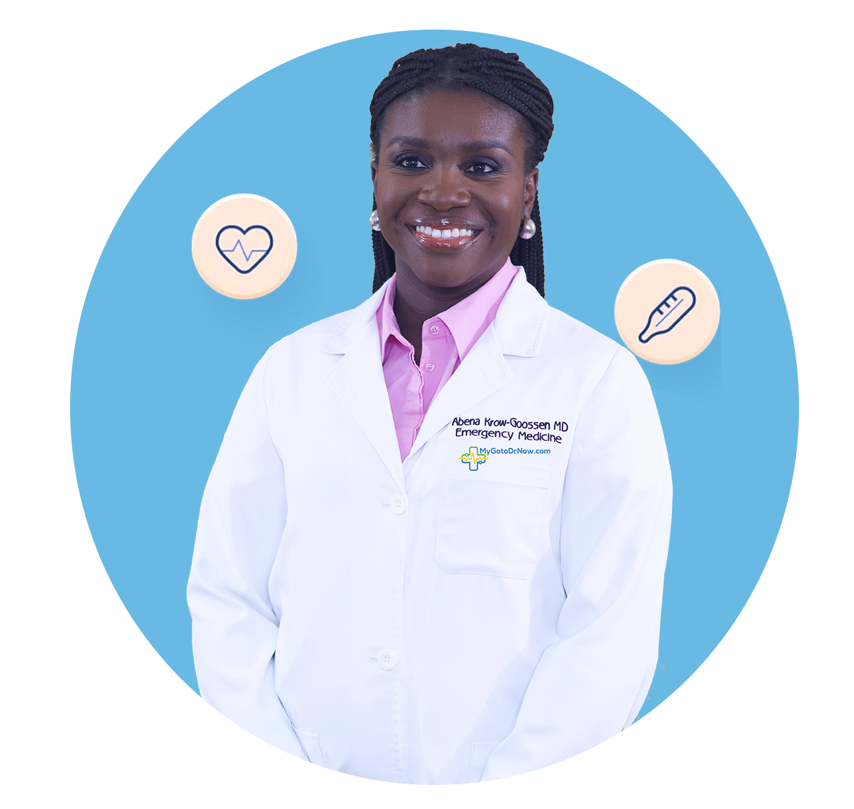 Hello and welcome! I’m Dr. Abena Krow. I understand that navigating healthcare can be challenging, which is why I founded My Goto Dr. Now—a virtual urgent care practice designed with your needs in mind. My goal is to provide immediate, compassionate, and personalized care from the comfort of your home. I believe in taking the time to truly listen to your concerns and provide the quality attention you deserve. I look forward to the opportunity to partner with you on your health journey.